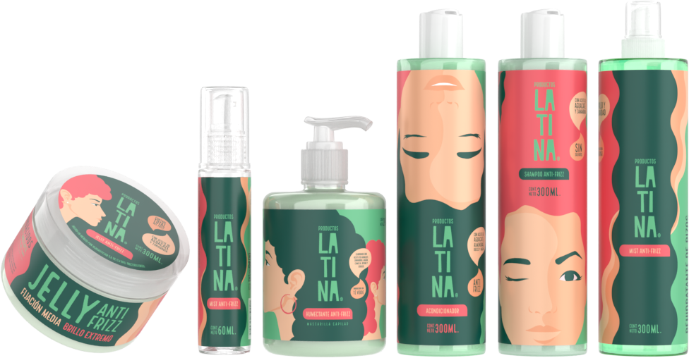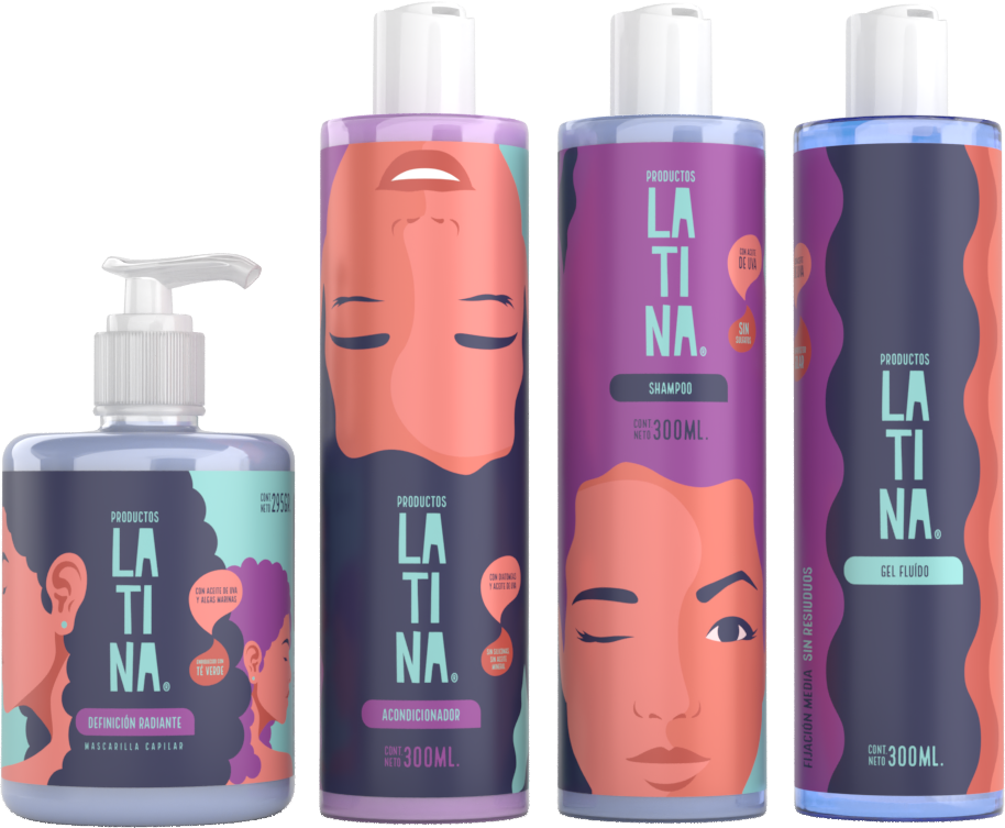 Productos LATINA. Sin sulfatos, siliconas, parafinas, aceite mineral, ceras o alcoholes secantes, todos ellos aptos para el método Curly Girl (Tendencia en la comunidad rizada).